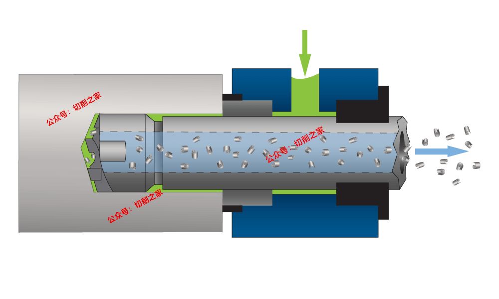 切屑不易排出。由于孔深,切屑经过的路线长,容易发生堵塞,造成钻头崩刀。因此,切屑的长短和形状要加以控制,并要进行强制性排屑。