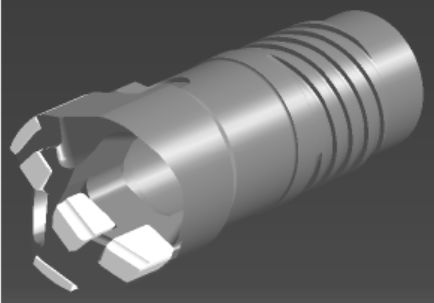 ③钻头采用三刃齿分布的结构,主切削刃采用非对称交错排列形式可顺利分屑并保证钻头在钻入工件和钻削过程中的平稳性。