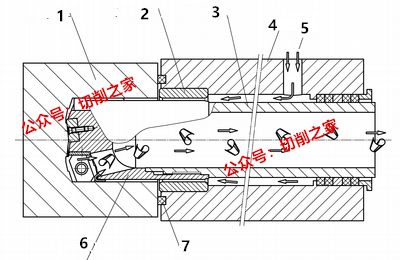 切削热不易传散。一般切削过程中有80%的切削热被切屑带走,而深孔钻削只有40%,刀具占切削热的比例较大,扩散迟、易过热,刀口温度可达600度,必须采取强制有效的冷却方式。
