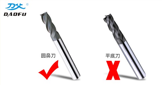 对石墨材料进行加工从开粗到精修,选择刀具时尽量选择平底带R刀,不要选择平底刀。因为平底刀的刀尖是锋利的,切削时石墨会容易崩。石墨材料比较硬也比较脆,用太过尖利的的刀具加工会容易崩坏。所以我们建议切削时选用带R角的刀具(0.5R或0.2R)
